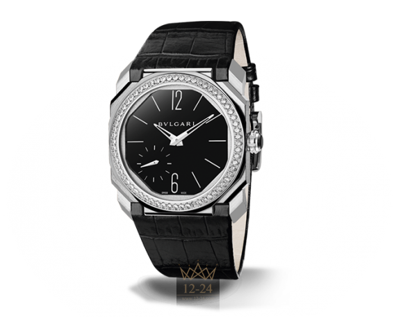 УЛЬТРАТОНКИЙ КАЛИБР С МАЛОЙ СЕКУНДНОЙ СТРЕЛКОЙ (ТОЛЩИНА 2,23 ММ) И ИНДИКАТОРОМ ЗАПАСА ХОДА НА ОБРАТНОЙ СТОРОНЕ КОРПУСА. Мануфактурный механизм с ручным заводом, малой секундной стрелкой и индикатором запаса хода на обратной стороне корпуса, калибр BVL 128 - Finissimo с узором Côtes de Genève, скошенными кромками и спиралевидным узором. Запас хода 65 часов. Ультратонкий корпус из платины (толщина 5,75 мм), диаметр 40 мм, безель с бриллиантами классической огранки, прозрачная задняя крышка. Заводная головка, отделанная керамикой. Черный полированный лакированный циферблат, рельефные часовые метки. Интегрированный ремешок из кожи аллигатора, классическая застежка из платины.