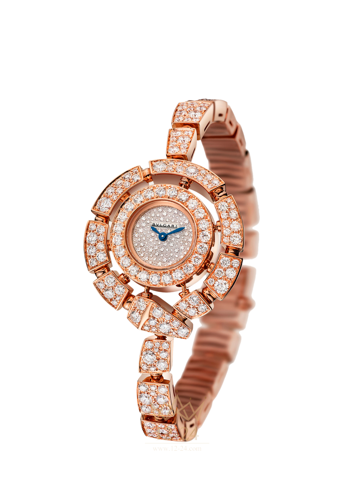 Serpenti Jewellery Watches (102673 SPP30D2CGD2C). Кварцевый механизм. Корпус диаметром 30 мм из розового золота 18 карат, бриллианты классической огранки. Циферблат со снежным бриллиантовым паве. Браслет из розового золота 18 карат с бриллиантами классической огранки.