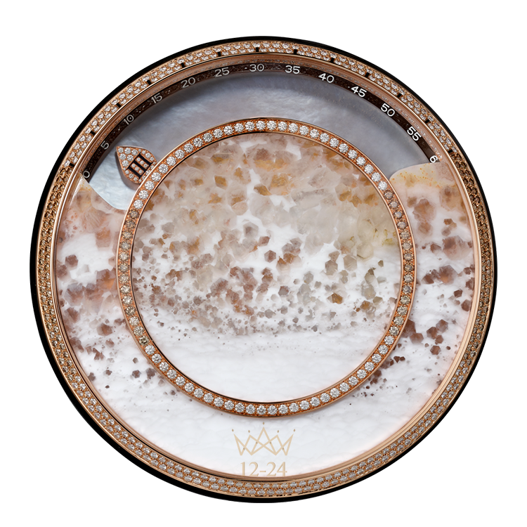 Розовое золото, агат, обсидиан, перламутр, коричневые бриллианты, бриллианты.