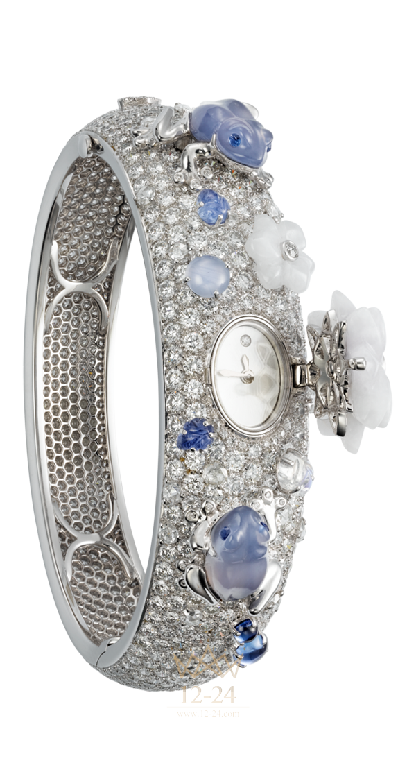 Часы со скрытым временем (HPI00735) категории Высокое ювелирное искусство, объемный мотив «лягушки», кварцевый механизм, корпус и браслет из белого золота 18 карат с родиевым покрытием.