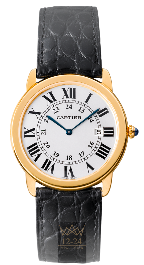 Созданные на основе модели Ronde de Cartier часы Ronde Solo сохранили в себе совершенство элегантного классического прототипа, а также характерные черты Cartier: римские цифры, синие стрелки в форме мечей, шкалу в стиле “железная дорога” и синюю отделку заводной головки.
