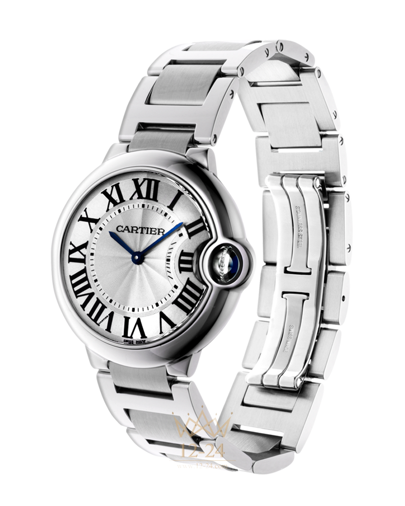 Воздушные словно шар, выполненные в оттенках цвета кабошона под аркой из драгоценного металла часы Ballon Bleu de Cartier элегантно смотрятся как на мужских, так и на женских запястьях. Римские цифры отклоняются от своей траектории при приближении к заводной головке глубокого синего цвета. Выпуклые очертания корпуса, матовые и полированные звенья браслета – в часах Ballon Bleu de Cartier проявилась вся многогранность часового искусства Cartier.