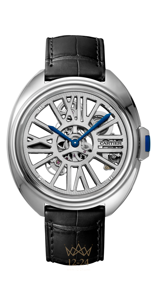 Часы Clé de Cartier (WHCL0008) с автоматическим подзаводом, модель скелетон, механизм с автоматическим подзаводом, калибр 9621 MC. Корпус из палладия 950 пробы, ключ из палладия 950 пробы с сапфиром, стрелки в форме мечей из вороненой стали.