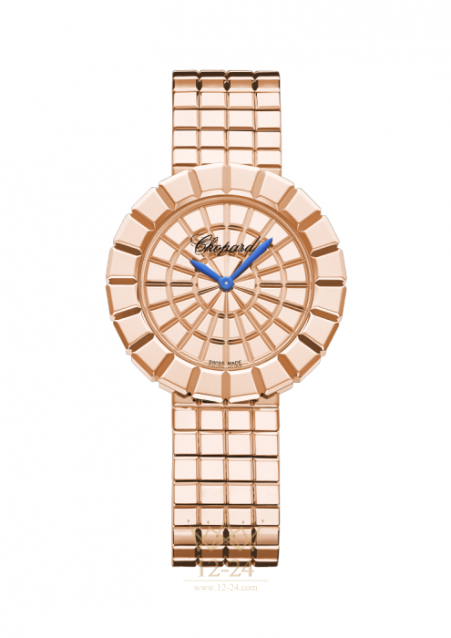 Лаконичный дизайн часов Ice Cube напоминает стеклянную мозаику из блестящих полированных элементов трапециевидной формы, образующих круговой узор. Часы с кварцевым механизмом на браслете из розового золота 750 пробы.