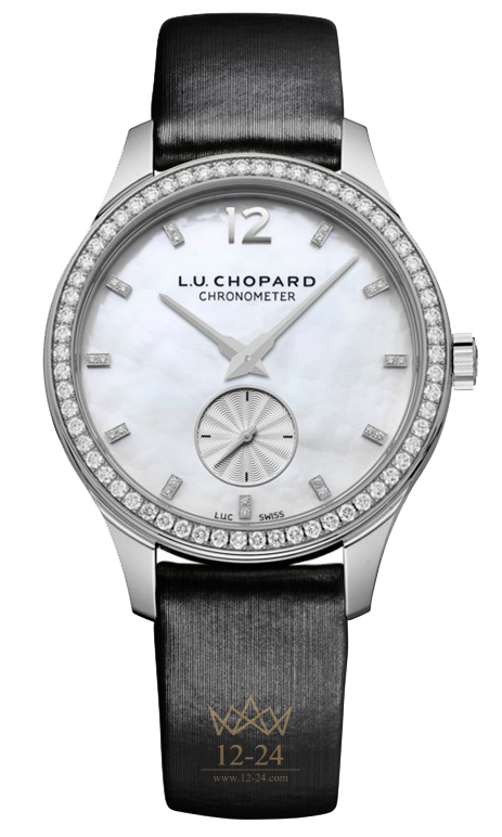 Часы L.U.C XPS 35 мм в корпусе из белого золота 750 пробы – это квинтэссенция классики в понимании Мануфактуры Chopard. Элегантно сдержанная женственная модель как в плане дизайна, так и размера, отличается ультратонким корпусом: всего лишь 7,1 мм толщиной. В ее оформлении белый перламутровый циферблат акцентирует усыпанные бриллиантами ободок и часовые метки. В корпусе установлен сертифицированный как хронометр надежный часовой механизм с автоматическим подзаводом и 65-часовым запасом хода, «сердце» которого бьется с частотой 28 800 полуколебаний в час.