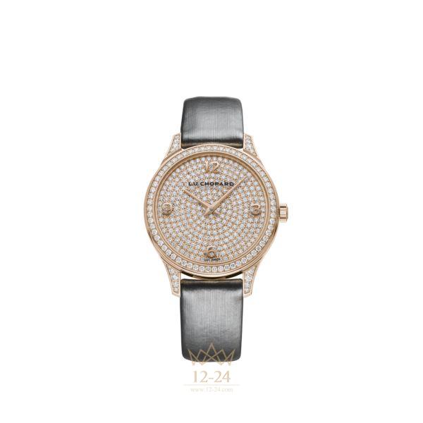 Облаченные в розовое золото 750 пробы часы L.U.C XP являют собой образец изысканной элегантности в исполнении Мануфактуры Chopard. Женственные и утонченные как по стилю, так и по размеру, эти ультратонкие часы исполнены подлинной красоты. На золотом циферблате с бриллиантовой инкрустацией «паве» выделяются стрелки и часовые метки с родиевым покрытием, а усеянные бриллиантами безель и корпус усиливают их роскошный блеск.