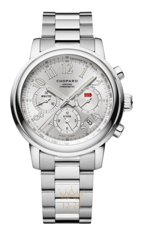 Являясь официальным хронометристом самого известного в мире регулярного ретро-ралли, компания Chopard выпустила в честь него автоматические механические часы Mille Miglia Chronograph в корпусе из нержавеющей стали на стальном браслете. Часы созданы под вдохновением от красоты и элегантности ретро-автомобилей. Их серый сатинированный циферблат в духе приборной панели и сертифицированный как хронометр механизм демонстрируют идеальный синтез автомобильного дизайна и часовой механики.