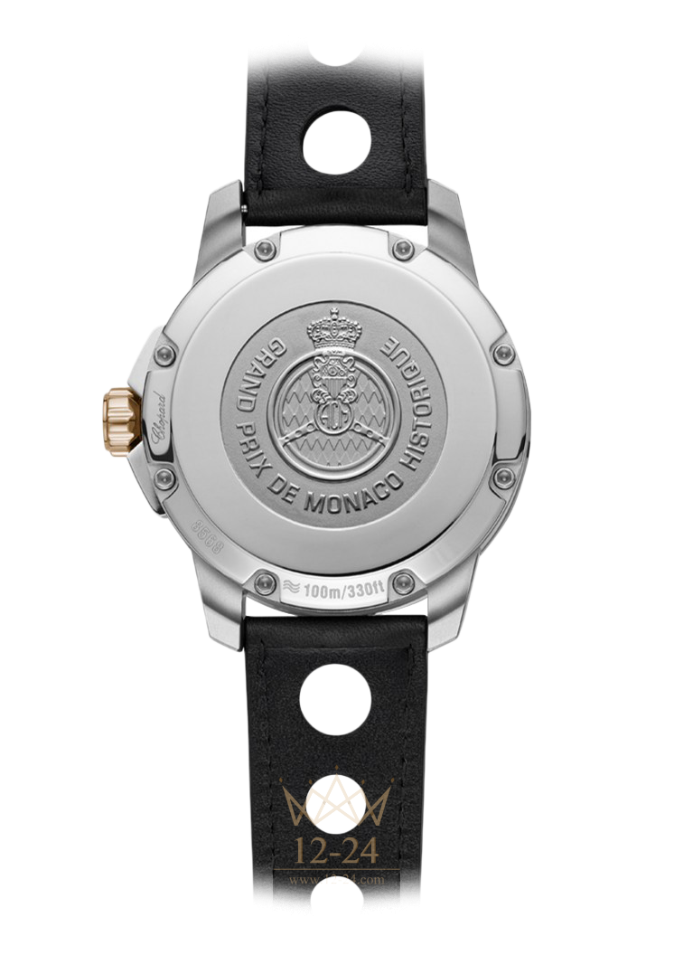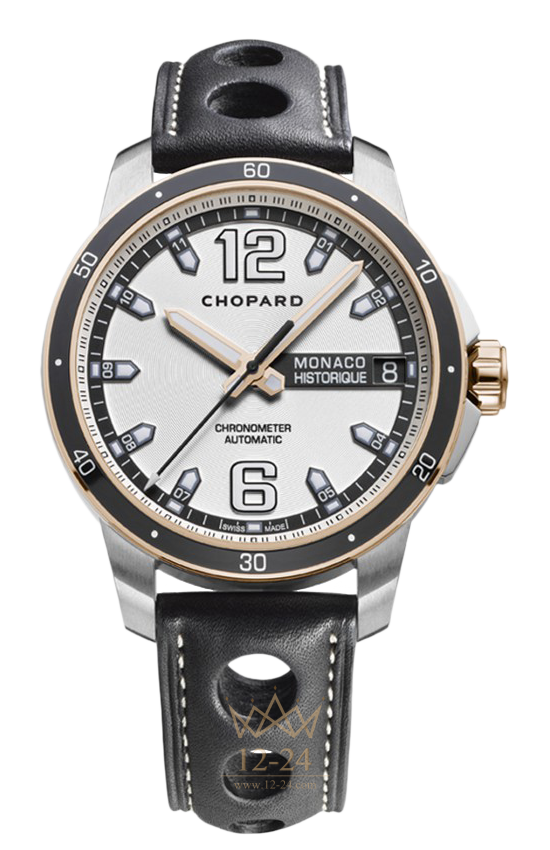 Являясь с 2002 года официальным хронометристом Исторического Гран-при в Монако, компания Chopard выпустила в его честь часы Grand Prix de Monaco Historique Automatic в корпусе из золота и титана. Серый циферблат со спиральной отделкой, тематически связывающий эти часы с классическими одноместными гоночными автомобилями 1970-х, великолепно сочетается с ободком и заводной коронкой из розового золота 750 пробы. Выполненная из нержавеющей стали задняя крышка с логотипом Автомобильного клуба Монако образуют выгодный контраст с титановым корпусом. В высокотехничном корпусе с обтекаемыми формами установлен часовой механизм, сертифицированный COSC.