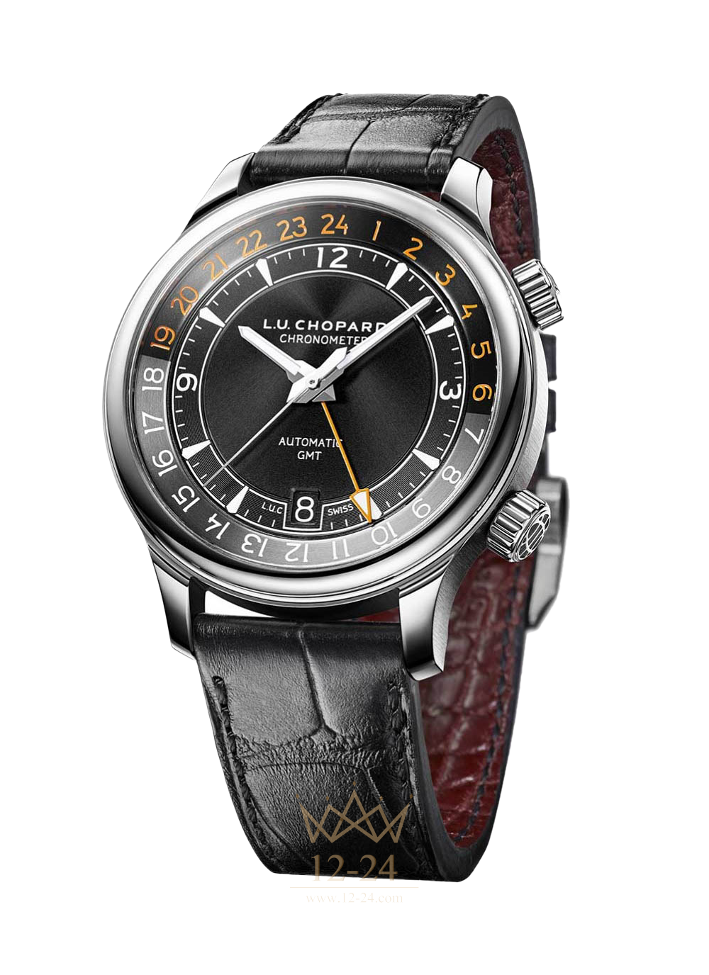 Безукоризненная элегантность, безупречное качество и выдающиеся технические характеристики превращают часы L.U.C в идеальный аксессуар для современного джентльмена, ценящего в жизни все самое лучшее. Вневременной и в высшей степени элегантный дизайн модели L.U.C GMT One построен на контрастном сочетании нержавеющей стали и черного циферблата с сатинированной отделкой.