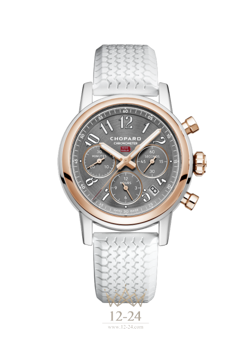 Официальный хронометрист самого престижного ретро-ралли, компания Chopard представляет женскую модель Mille Miglia Classic Chronograph из нержавеющей стали и розового золота 750 пробы. Элегантные формы и прозрачная задняя крышка часов перекликаются с эстетикой классических автомобилей, серебристый циферблат с пескоструйной обработкой ассоциируется с винтажным стилем болидов, а прошедший сертификацию хронометра калибр подчеркивает сходство между автомобильной и часовой механикой. Благодаря знаменитому ремешку из каучука с рисунком протектора шин Dunlop 1960-х годов, эти выразительные часы в наиболее стильной манере подчеркнут статус своей обладательницы.