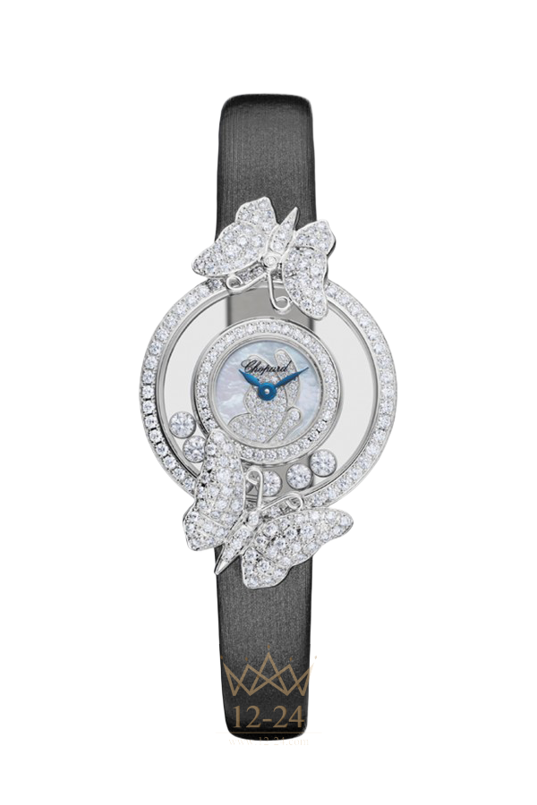 Еще свободнее, чем прежде, россыпь бриллиантов скользит вокруг циферблата часов Happy Diamonds Icons Watch (204444-1001) в корпусе из белого золота 750 пробы с бриллиантами. Две бриллиантовые бабочки парят над изящным корпусом, а легендарные подвижные бриллианты Chopard свободно скользят между двумя сапфировыми стеклами, поражая воображение игрой света, любви и свободы.