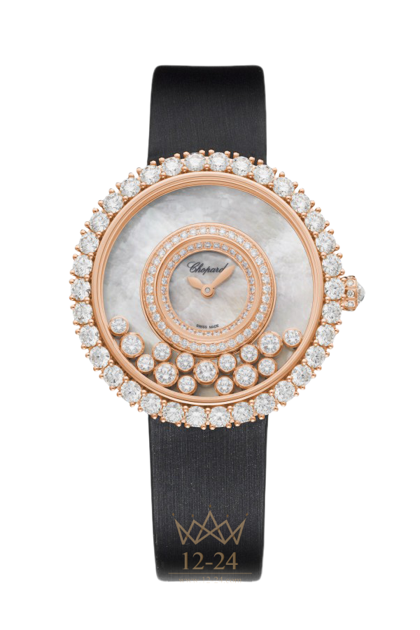 Эти восхитительные часы (204445-5001) созданы в честь 40-летия коллекции Happy Diamonds, навеянной зрелищем водопада, сотканного из мириадов сверкающих капель. Корпус 37 мм из розового золота 750 пробы, инкрустированный бриллиантами безель, атласный ремешок, подобный облаку циферблат из белого перламутра и танцующие бриллианты в крапановой оправе создают образ залитого светом мира грез и фантазий.