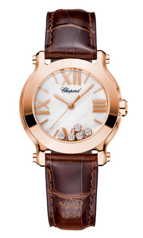 Эти соблазнительно женственные благодаря маленькому, 30 мм в диаметре, размеру часы Happy Sport в корпусе из розового золота 750 пробы сохранили непосредственность более крупных моделей коллекции. Спортивные, но стильные часы в корпусе смелого, современного дизайна выражают присущее Chopard видение спорта, а знаменитые подвижные бриллианты придают им игривую живость.