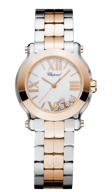 Эти соблазнительно женственные благодаря маленькому, 30 мм в диаметре, размеру часы Happy Sport в корпусе из розового золота 750 пробы и нержавеющей стали сохранили непосредственность более крупных моделей коллекции. Спортивные, но стильные часы в корпусе смелого, современного дизайна выражают присущее Chopard видение спорта, а знаменитые подвижные бриллианты придают им игривую живость.