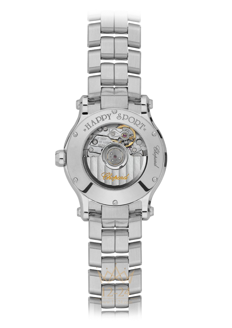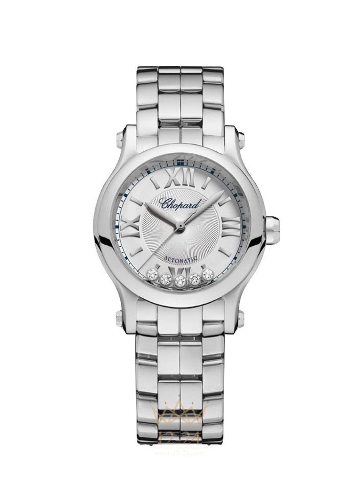 Стильные женственные часы Happy Sport 30 mm Automatic из нержавеющей стали оснащены механическим калибром с автоподзаводом. Спортивный корпус небольшого размера на браслете из нержавеющей стали и современный серебристый циферблат с гильошированным мотивом в центре отражают представление Chopard о непринужденном стиле. Пять знаменитых подвижных бриллиантов Chopard весело танцуют в вихре света.