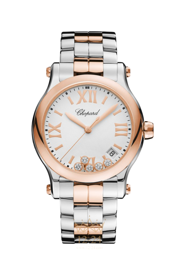 Часы Happy Sport 36 мм (278582-6002) из нержавеющей стали и розового золота 750 пробы с кварцевым механизмом воплощают сияющую женственность. Импозантный полированный безель, плавно переходящий в элегантно изогнутые ушки креплений, великолепно контрастирует с легкостью игривого танца пяти подвижных бриллиантов. Двухцветный металлический браслет придает модели нотку изысканности, соответствующую образу современной женщины Chopard с ее неукротимым жизнелюбием.