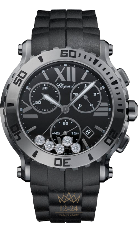 Часы Happy Sport Chrono в стальном корпусе с DLC-покрытием – это союз спортивного стиля и женственности, апогей современного шика. Вращающийся безель и хронограф придают часам по-настоящему спортивный вид, а подвижные бриллианты, абсолютно свободно скользящие над идеально сбалансированным циферблатом, доказывают, что у Chopard часовое мастерство идет рука об руку с ювелирным искусством.