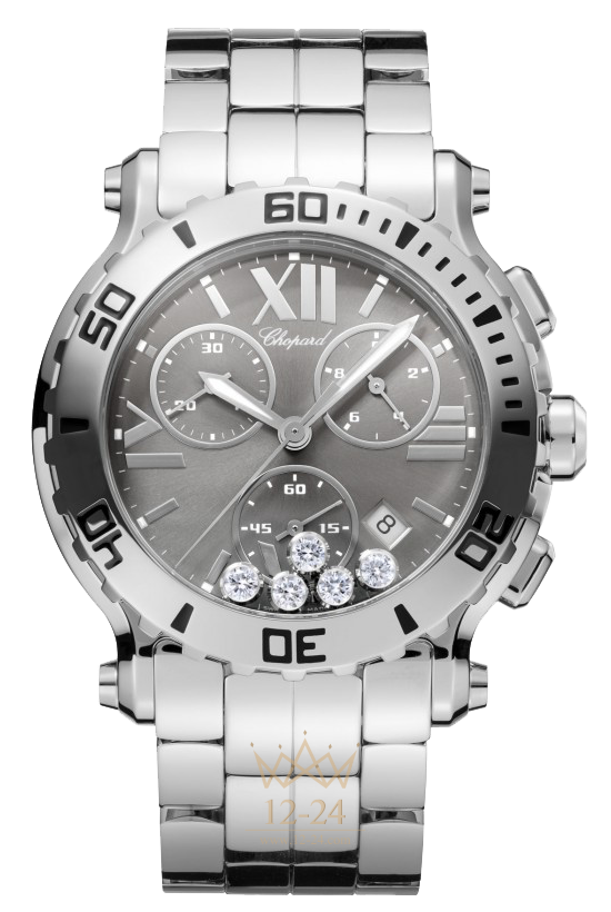 Часы Happy Sport Chrono в корпусе из нержавеющей стали – это союз спортивного стиля и женственности, апогей современного шика. Вращающийся безель и хронограф придают часам по-настоящему спортивный вид, а подвижные бриллианты, абсолютно свободно скользящие над идеально сбалансированным серебристым циферблатом, доказывают, что у Chopard часовое мастерство идет рука об руку с ювелирным искусством.