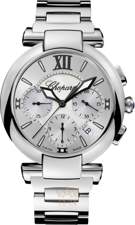 Оснащенные хронографом часы IMPERIALE сочетают в себе деликатную величественность и утонченный стиль. Внутри корпуса из нержавеющей стали находится изящный серебристый циферблат с перламутровым центральным элементом. Величавые римские цифры, изящно очерченные стрелки в стиле ампир, не перегруженный деталями корпус, заводная головка с аметистом в форме цветка лотоса превращают эти часы в квинтэссенцию стиля и элегантности.