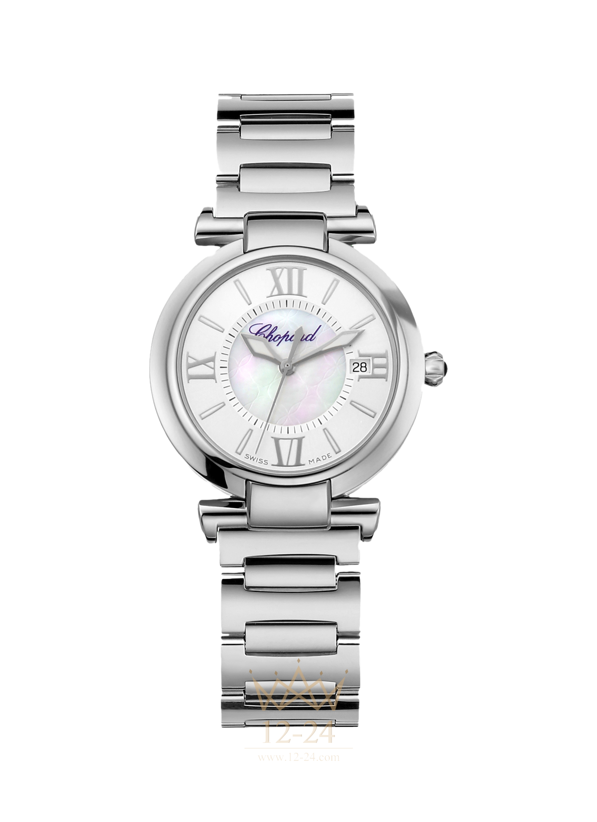 Достойное украшение для Королевы наших дней, эти изящные часы с автоматическим заводом из нержавеющей стали отличаются грациозной утонченностью, свойственной коллекции IMPERIALE. Неподвластная времени элегантность классического белого циферблата, полированный металлический браслет и корпус, а также неброское очарование аметистов подчеркивают спокойную уверенность в себе, присущую обладательнице часов.