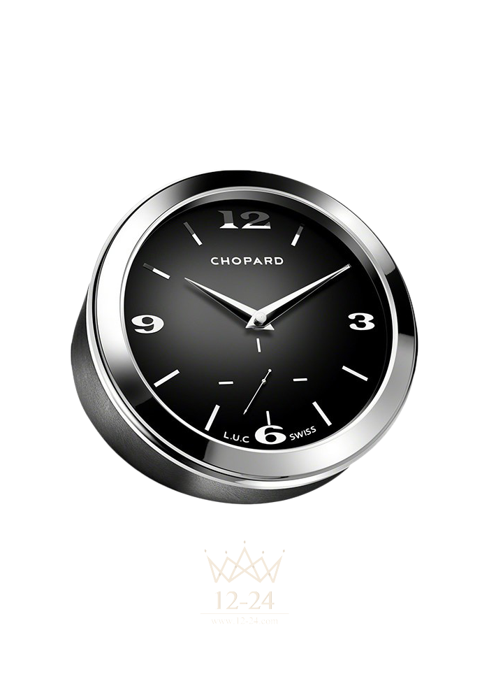 Настольные часы L.U.C с палладиевой отделкой выражают дух великих часовых традиций. Они созданы под вдохновением от коллекции роскошных наручных часов L.U.C. и несут черты мастерства Мануфактуры Chopard. В палладиевой отделке, черной коже и изысканном циферблате усматривается богатое сочетание материалов, столь типичное для марки Chopard.