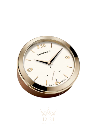 Настольные часы L.U.C с отделкой розовым золотом выражают дух великих часовых традиций. Они созданы под вдохновением от коллекции роскошных наручных часов L.U.C. и несут черты мастерства Мануфактуры Chopard. В отделке розовым золотом, коричневой фактурной коже и изысканном циферблате усматривается богатое сочетание материалов, столь типичное для марки Chopard.