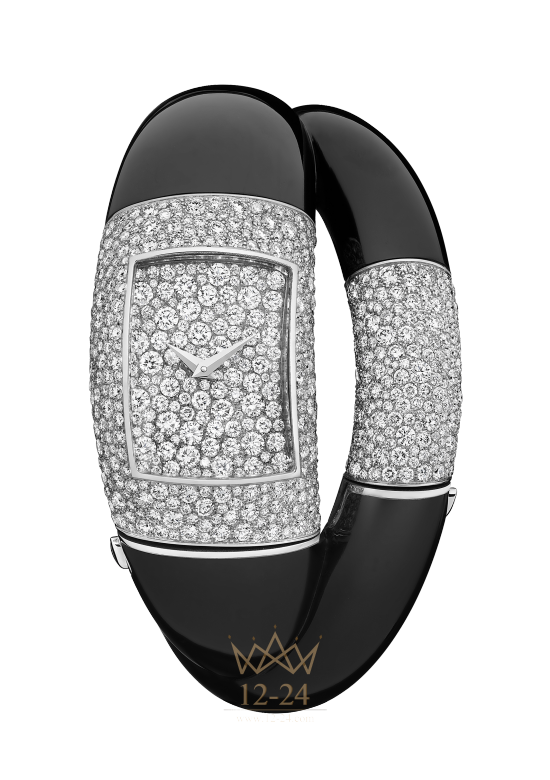 Двойной браслет из лакированного гагата и белого золота со «снежным» паве