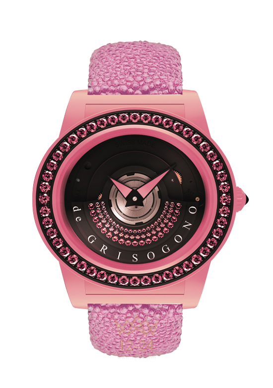 Корпус из розового перламутрового фотолюминесцентного композитного стекловолокна с розовыми сапфирами. Черненый реверсивный ротор с отделкой камнями. Стрелки Dauphine с люминесцентным покрытием SLN розового цвета. Сапфировое стекло с антибликовым покрытием. Ремешок из кожи ската розового цвета. Раскладывающаяся застежка из розового перламутрового фотолюминесцентного композитного стекловолокна и стали с черным PVD-покрытием. Заводная головка из розового перламутрового фотолюминесцентного композитного стекловолокна с черным бриллиантом. Водонепроницаемость 3 АТМ.