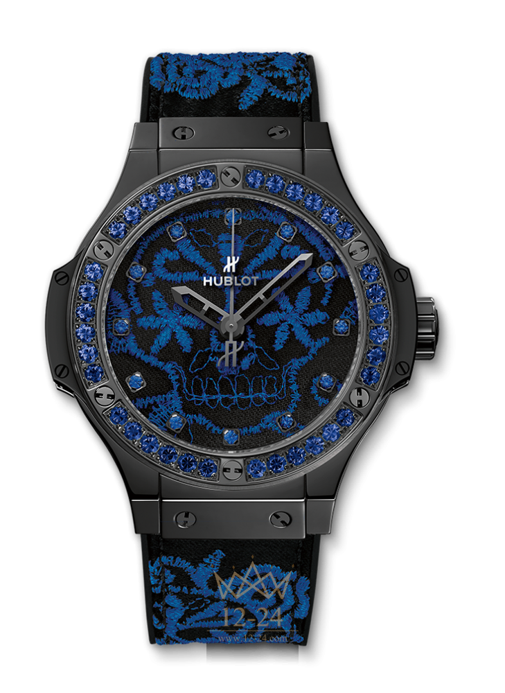 Механизм с автоподзаводом, калибр HUB1110, 63 компонента, 21 камень, частота колебаний 28800 пк/ч, запас хода 42 ч. Корпус выполнен из керамики. Безель украшен 36-ю синими сапфирами. Коронка выполнена из метала, соответствующего материалу корпуса, с резиновой вставкой. Стекло сапфировое с антибликовым покрытием. Задняя крышка выполнена из керамики с вставкой антибликового сапфирового стекла. Циферблат украшен цветной вышивкой. Часовые маркеры инкрустированы 12-ю синими сапфирами. Водонепроницаемость составляет 100 м. Каучуковый ремешок с вышивкой на 100% черном шелковом ремешке. Застежка выполнена из нержавеющей стали. Часы выпущены ограниченной серией 100 штук.