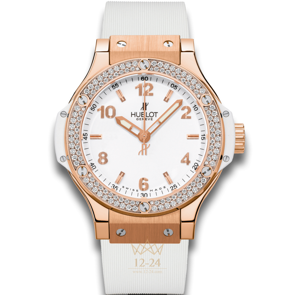 Полированное красное золото 18K и 126 бриллиантов общим весом 0,87 карата, 6 H-образных титановых винтов.