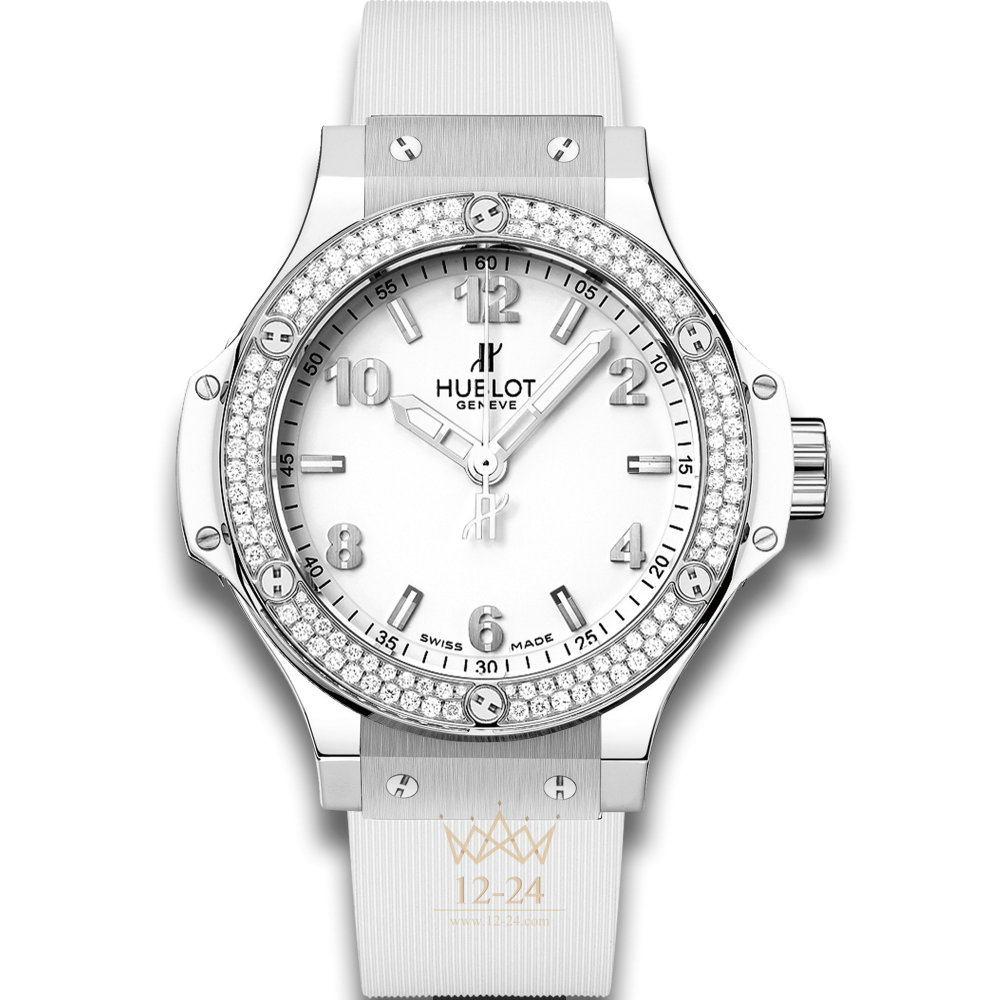 Полированная нержавеющая сталь и 126 бриллиантов общим весом 0,87 карата, 6 H-образных титановых винтов.