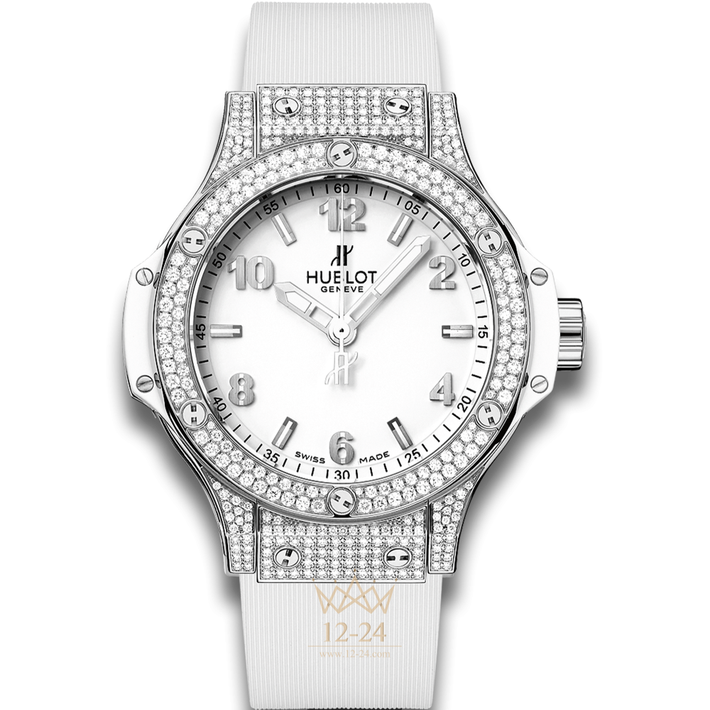 Полированная нержавеющая сталь и 126 бриллиантов общим весом 0,87 карата, 6 H-образных титановых винтов.