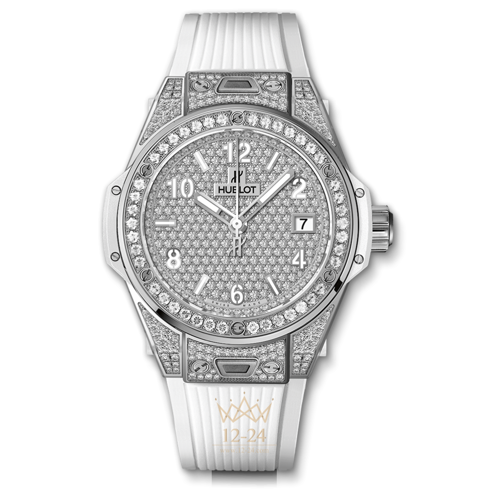 Часы представлены в корпусе из нержавеющей стали размером 39 мм и водонепроницаемостью 100 метров. Внутри корпуса установлен автоматический механизм Калибр HUB 1710 с запасом хода 50 часов. На циферблате из белых бриллиантов отображаются часы, минуты, секунды, дата. Часы комплектуются белым каучуковым ремешком с вставкой из нержавеющей стали.