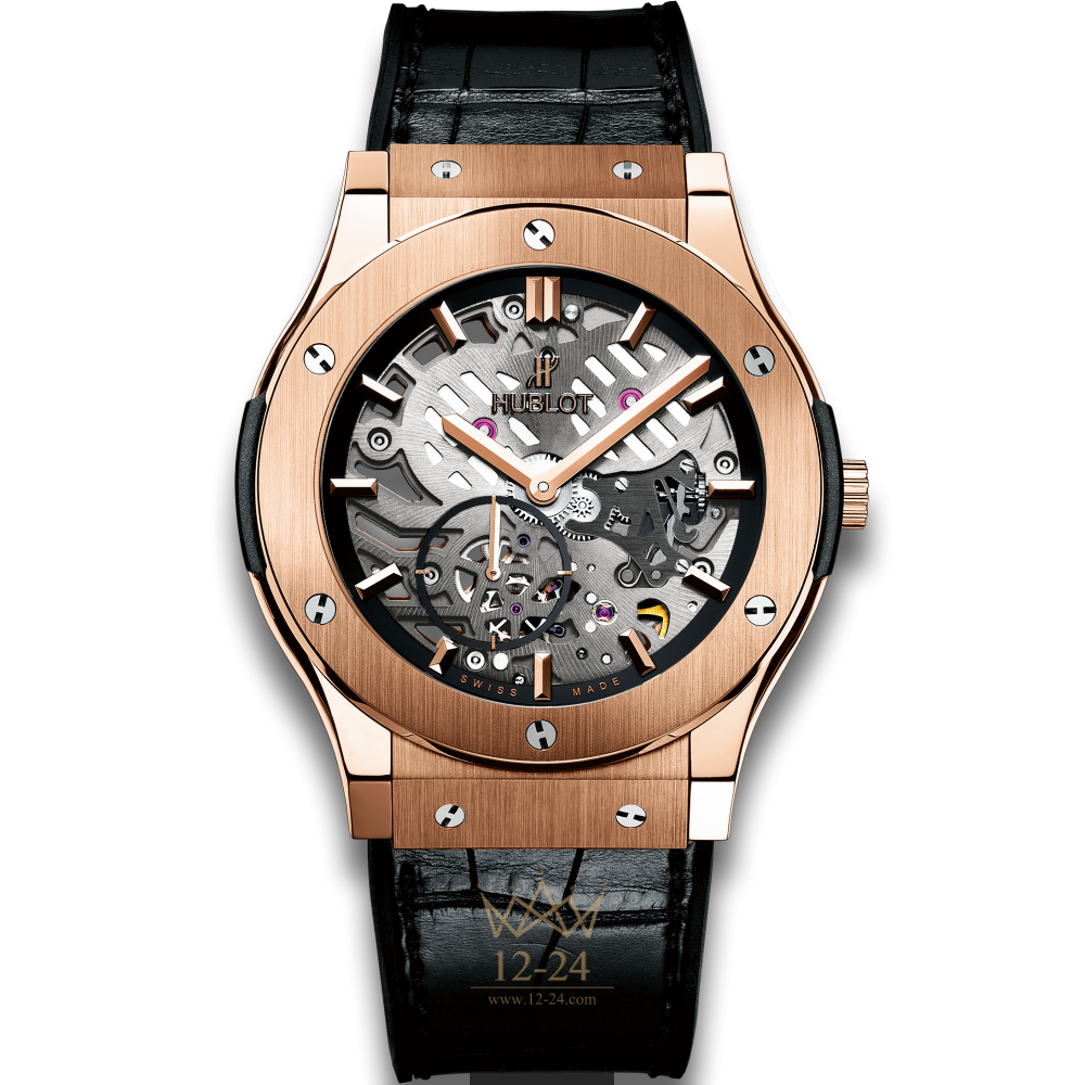 Собственная мануфактура позволяет Hublot воплощать любые задумки и создавать концепции скелетонизированных часов с уникальной современной эстетикой. Hublot предлагает скелетонизированные часы самых разных направлений: от элегантных Classic Fusion Classico Ultra-Thin до очень сложных в техническом и художественном отношении Classic Fusion Tourbillon Skull.