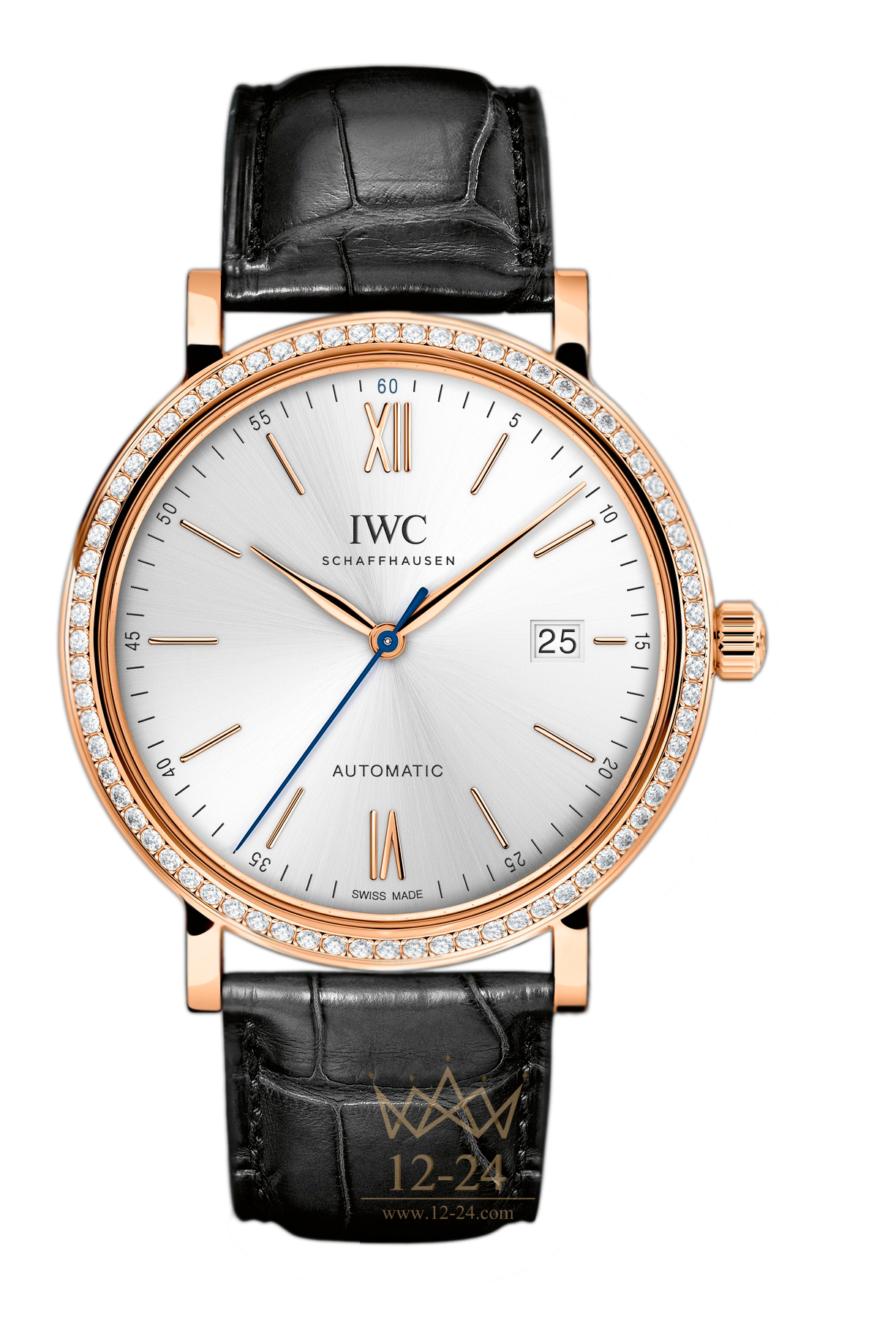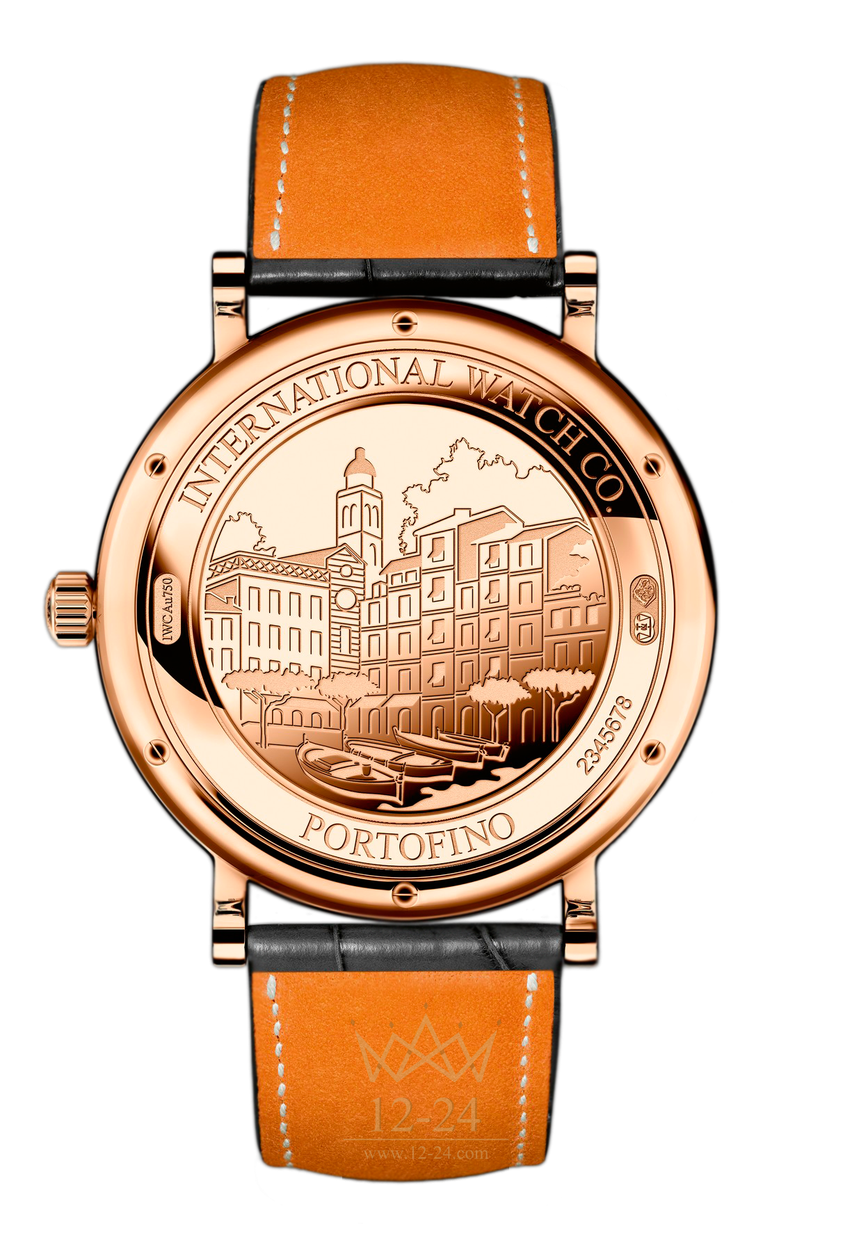 Эта модель представлена в корпусе из розового золота, с ободком, обрамленным бриллиантами, и ремешком Santoni из кожи аллигатора. Узор в виде солнечных лучей на циферблате подчеркивает благородство часов. А обратную сторону украшает изящная гравировка с изображением гавани Портофино.