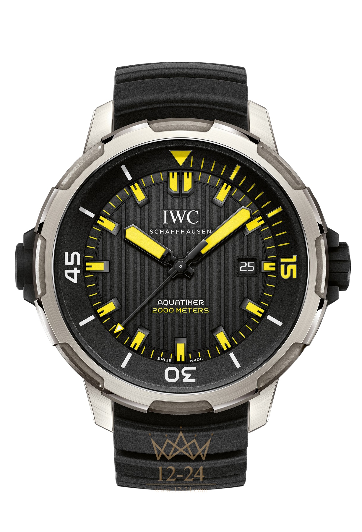 Новые часы Aquatimer Automatic 2000 (IW358001) представляют собой надежный резервный инструмент для экстремальных подводных погружений. Материал корпуса — титан — подчеркивает преемственность часов с моделями-предшественницами. Увеличенный до 46 мм размер корпуса обеспечил удобную считываемость показаний и достаточное пространство для размещения крупного мануфактурного калибра 80110 производства IWC.