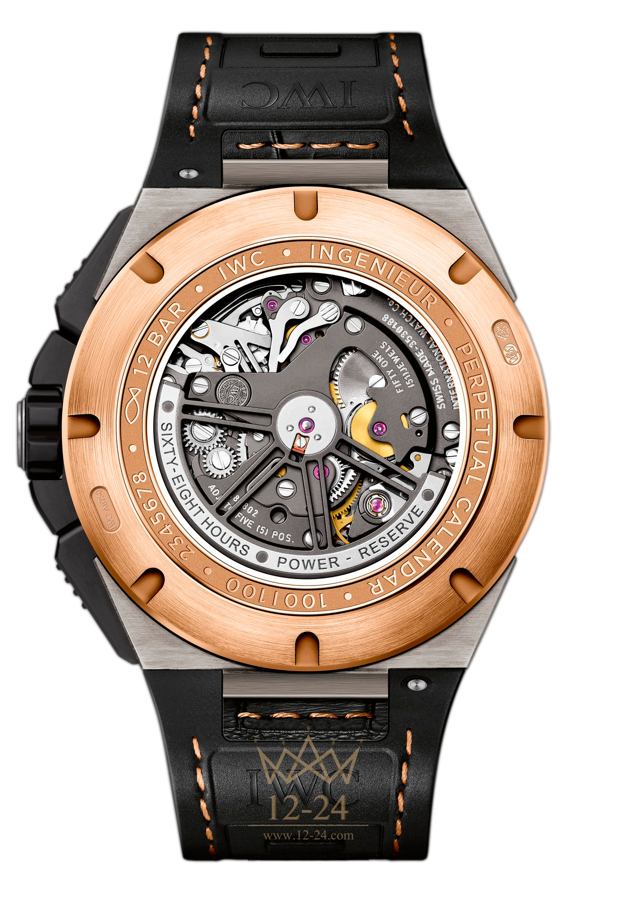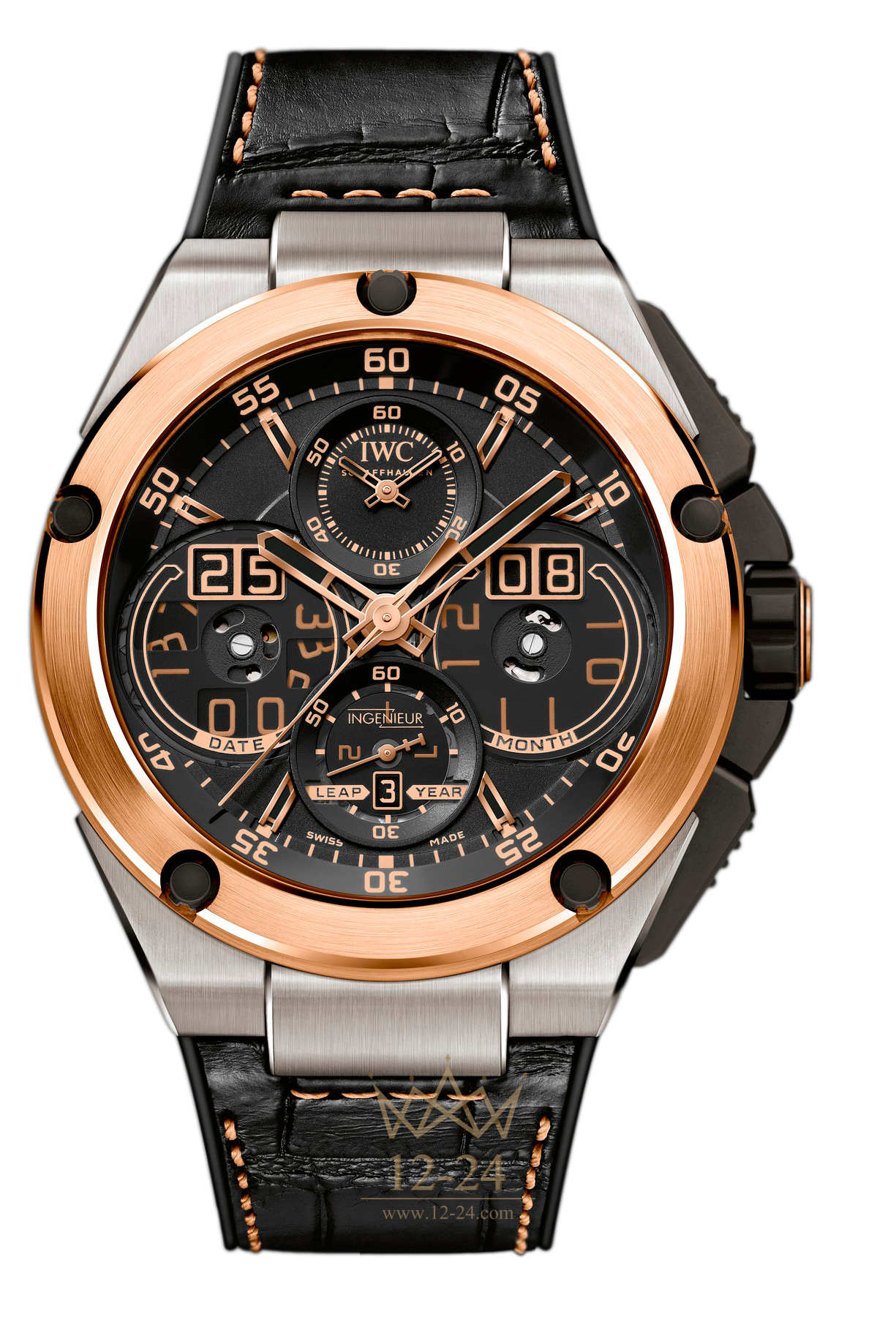 Часовая фабрика в городе Шаффхаузен по праву считается новатором в области новых материалов. Для производства новых часов Ingenieur Perpetual Calendar Digital Date-Month компания IWC впервые применила алюминид титана. Его сплав по легкости и прочности превосходит титан и применяется в мотоспорте. Детали корпуса черного цвета произведены из оксида циркония – классического материала «Формулы-1». Современные гоночные болиды оснащены кнопкой мгновенного ускорения, которая приводится в действие ровно в нужный момент. Аналогом этого устройства в часах с вечным календарем и цифровым указателем даты и цикла високосных лет является быстродействующий переключатель IWC. Каждую полночь (в момент поворота указателя даты) он накапливает энергию, которая высвобождается в конце месяца, а в конце года происходит одновременное переключение всех пяти дисков-указателей. Благодаря трем полупрозрачным счетчикам, в новогоднюю ночь можно наблюдать движение всех механизмов на циферблате. Это чудо техники заворожит любого почитателя точной механики. Через прозрачную заднюю крышку из сапфирового стекла можно увидеть калибр 89802, ротор которого напоминает спицы алюминиевого автомобильного колесного диска.