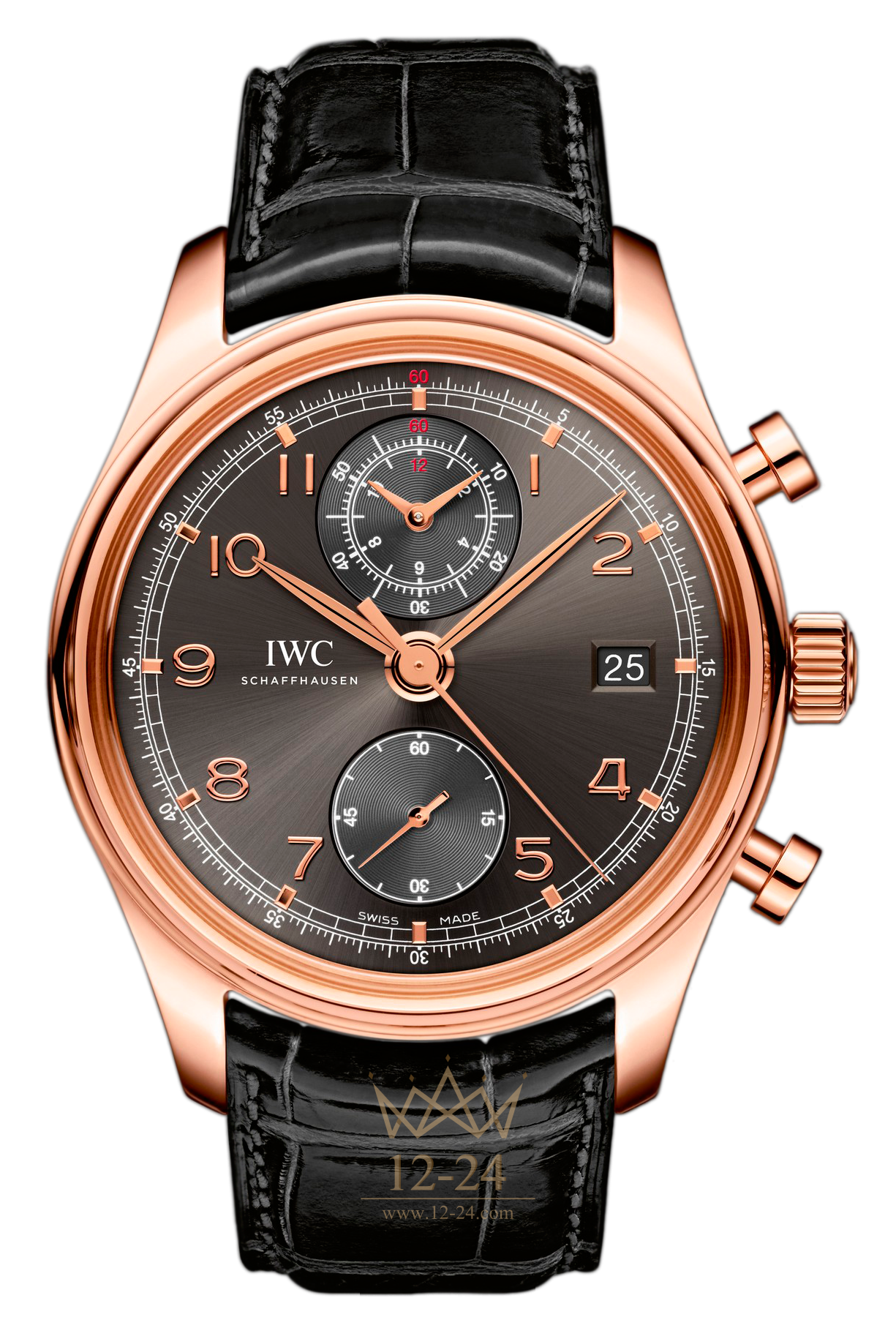 Новый хронограф семейства Portugieser можно назвать прямым наследником модели Артикул 3714. Его циферблат увеличился в диаметре и стал на 2 мм выше, но это не бросается в глаза, благодаря стеклу с изогнутыми краями. Дизайн данного классического варианта вместе с минутной шкалой в «железнодорожном» стиле (как и в предыдущей модели) гармонично сбалансирован. Для Portugieser Chronograph Classic был специально разработан калибр 89361 производства IWC. Он дал возможность разместить на циферблате 12-часовую разметку, которая позволяет считывать время обычным способом. Через прозрачную заднюю крышку из сапфирового стекла проглядывает ротор, украшенный узором «женевские полоски». Все модели выпускаются с ремешком Santoni из кожи аллигатора.