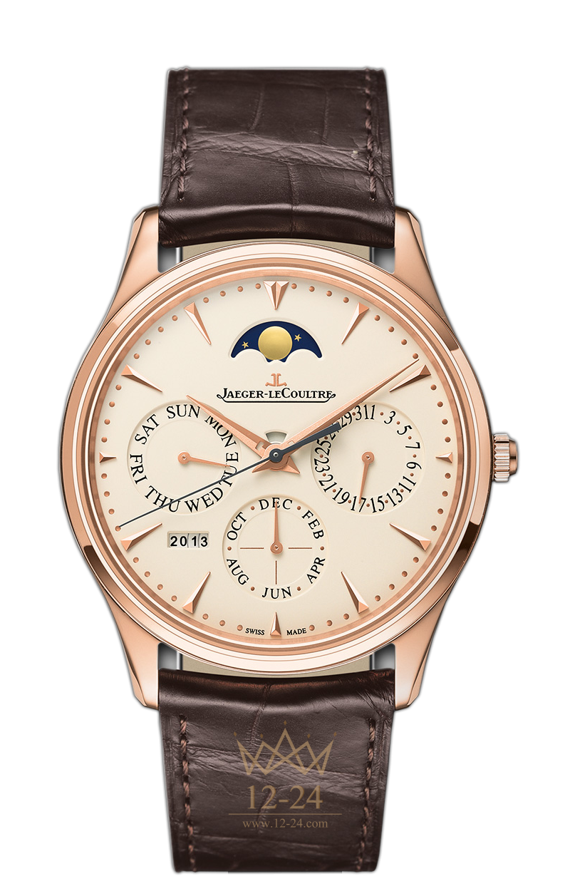 Компания Jaeger-LeCoultre в 2013 году представила свою новую ультра тонкую модель Master Ultra Thin Perpetual в розовом золоте поместив в неё вечный календарь. Вечный календарь, включает в себя механизм, самоустанавливающийся на различные количества дней в месяце - 28, 30 или 31. В Вечном календаре также содержится индикатор високосного года. Совершающий один оборот в год, месячный индикатор этих часов соединен с шестеренкой, разделенной на четыре сектора, один из которых указывает високосный год. Эта шестеренка делает полный оборот за четыре года. Таким образом, без вмешательства человека, Вечный календарь точно указывает дату, день недели, месяц, фазы луны и високосный год. На циферблате цвета слоновой кости центральная часовая и минутная стрелка из розового золота 750 пробы в тон корпусу часов, а так же секундная синего цвета из вороненой стали. В положении на 3 часа расположена дата. На 6 часов расположен индикатор месяца, а в положении на 9 часов индикатор дня недели. В положении между 7 и 8 часами - год. Под 12 так же находится индикатор Фазы Луны. Весь этот сложный механизм Jaeger-LeCoultre Calibre 868 с автоподзаводом на 46 камнях с запасом хода в 43 часа толщиной всего 4.72 мм.