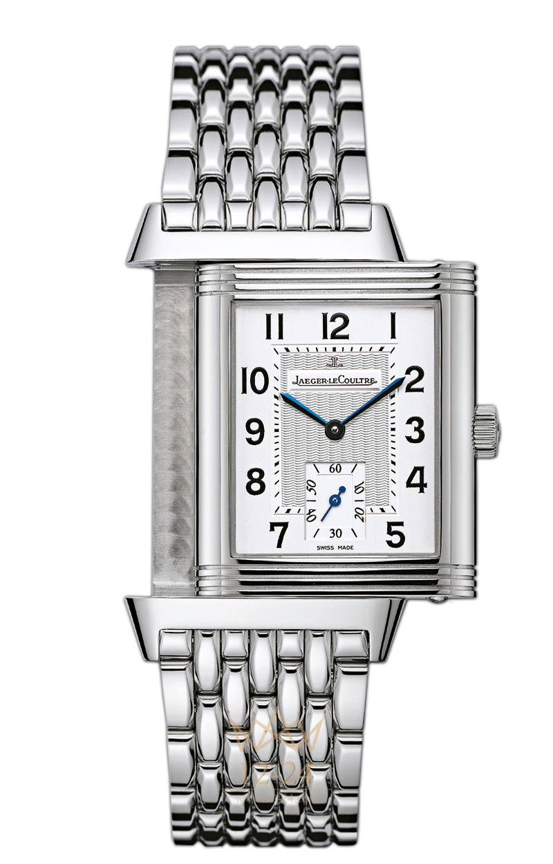 Данная модель - образец классических часов в стиле "ар-деко" с переворачивающимся корпусом "реверсо" из стали, на стальном браслете. За индикацию основного времени отвечает калибр 822 с ручным заводом.