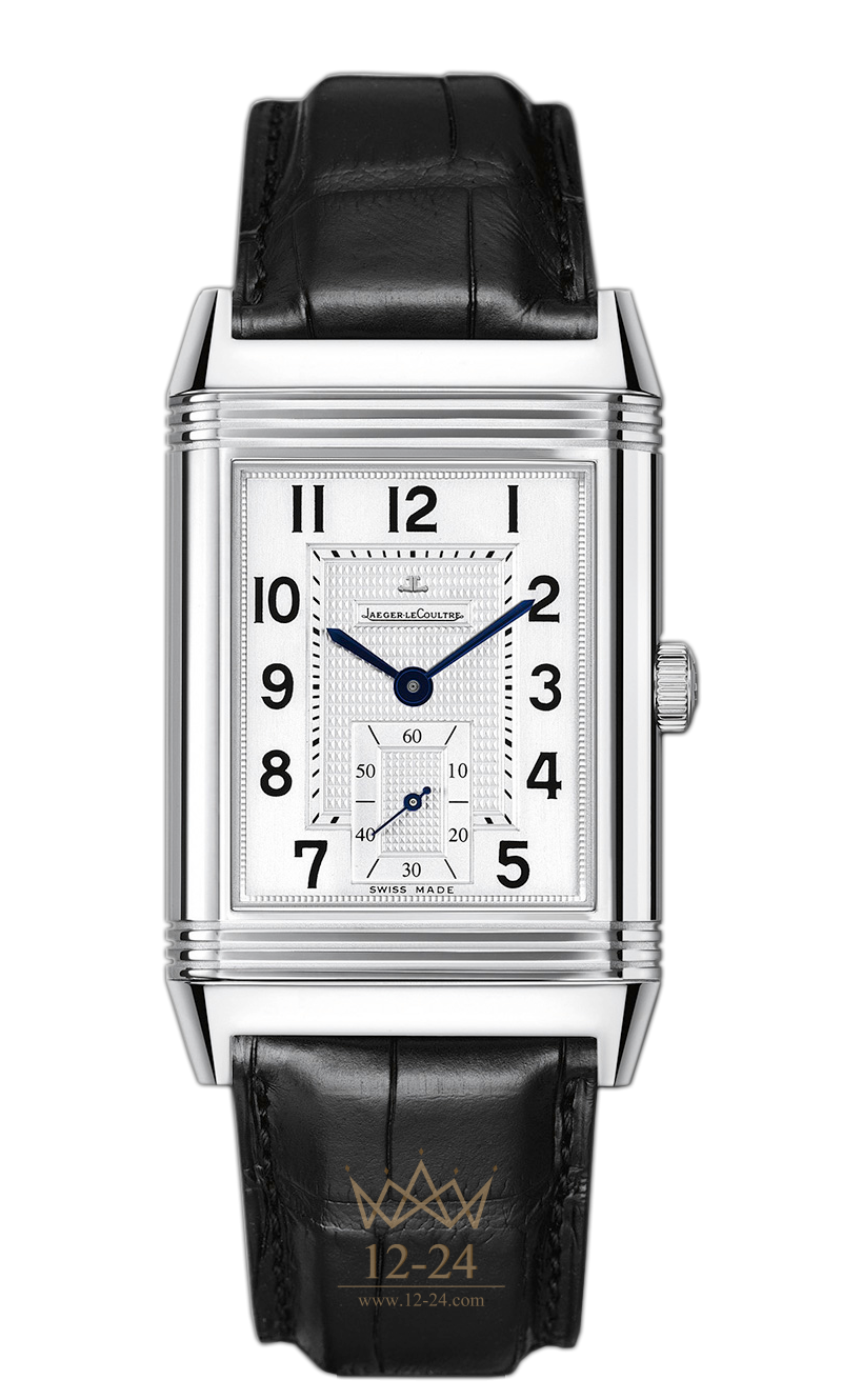 Данная модель - образец классических часов в стиле "ар-деко" с переворачивающимся корпусом "реверсо" из стали, на кожаном ремешке. Циферблат выполнен в бело-серебристом цвете и украшен гильоше в центре. За индикацию основного времени отвечает калибр 976 с ручным заводом.