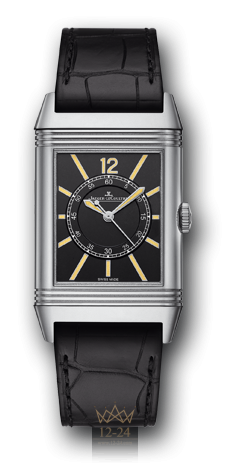 Вдохновением послужила модель Jaeger-LeCoultre Reverso 1935 с центральной секундной стрелкой, ее еще называют Jaeger-LeCoultre Grande Reverso 1931 г. Новинка демонстрирует комфортный дизайн с изюминкой старинной эстетики, соответствует всем технологическим стандартам. Потрясающий циферблат насыщенного черного цвета. По центру разместились стрелки: часовая, минутная и тонкая секундная. Вокруг них расположились часовые индексы и большая арабская цифра 12. Метки и стрелки с родиевым покрытием. По центру циферблата - 60-секундная шкала. Корпус выполнен из драгоценного белого золота 18К, размерами: 46.80 мм x 27.40 мм и толщиной: 9.20 мм. Задняя крышка корпуса имеет особую гравировку. Заводная головка в положении на 3 часа из 18-каратного белого золота.