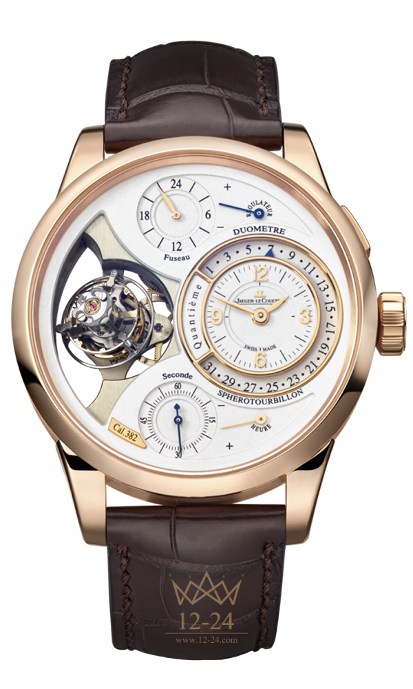 Великолепная модель Duomètre Sphérotourbillon (6052420) из розового золота по праву входит в сокровищницу Высокого часового искусства. Она завораживает создаваемой игрой света и удивительно гармоничным сочетанием разных элементов. В их числе — турбийон, словно парящий в невесомости. Данная модель представлена исключительно в бутиках Jaeger-LeCoultre.