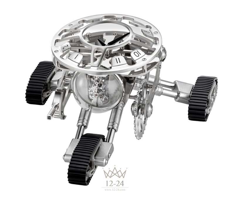 Transformer Time «Grant» 76.6005/104 Silver — операционный робот-часы на трех гусеничных траках, напоминающий фантастические механизмы-трансформеры. «Grant» может трансформироваться, принимая три различных положения корпуса. Индикация времени осуществляется на защитной панели робота.