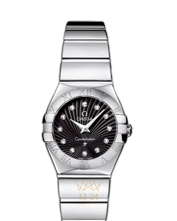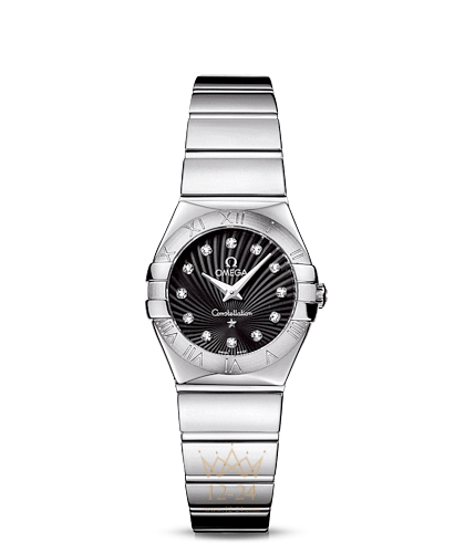 Эта полированная модель имеет черный циферблат с узором Supernova и бриллиантовыми часовыми метками, который накрыт устойчивым к царапинам сапфировым стеклом. Безель с выгравированными римскими цифрами закреплен на корпусе диаметром 24 мм из нержавеющей стали. Часы дополняет браслет из нержавеющей стали. В этих часах используется высокоточный кварцевый механизм OMEGA, калибр 1376.