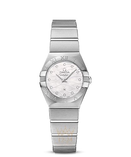 Данная модель имеет гравированный белый перламутровый циферблат с узором из расходящихся от легендарных скобок волн. Циферблат насчитывает 12 бриллиантовых часовых меток. Безель с выгравированными римскими цифрами закреплен на корпусе диаметром 24 мм из нержавеющей стали, который дополнен стальным браслетом. В часах используется кварцевый часовой механизм OMEGA, калибр 1376.