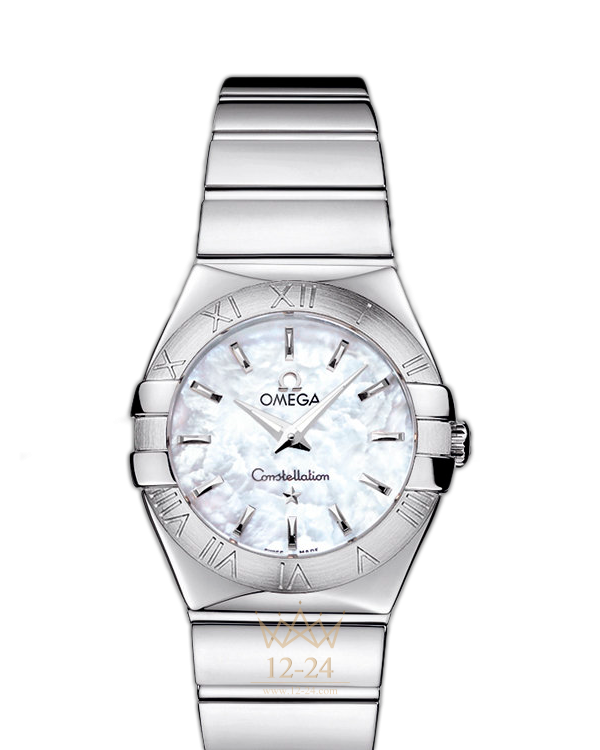 Необычайно эффектный дизайн часов OMEGA Constellation прошел проверку временем. Его характерной особенностью стали знаменитые скобки по бокам часового корпуса и впечатляющие циферблаты. Эта полированная модель имеет белый перламутровый циферблат, который накрыт устойчивым к царапинам сапфировым стеклом. Безель с выгравированными римскими цифрами закреплен на корпусе диаметром 27 мм из нержавеющей стали. Часы дополняет браслет из нержавеющей стали. В этих часах используется высокоточный кварцевый механизм OMEGA, калибр 1376.