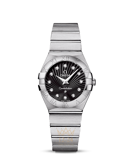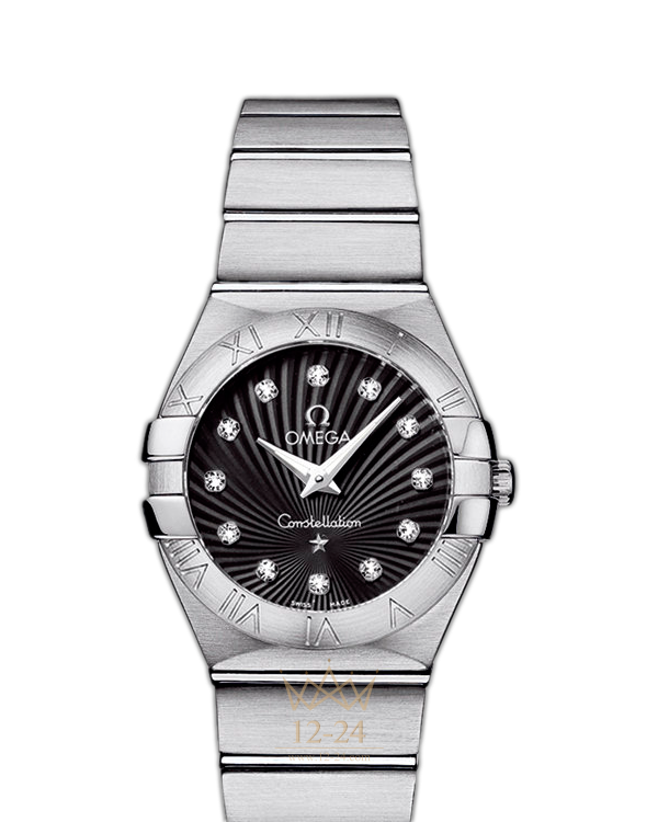 Необычайно эффектный дизайн часов OMEGA Constellation прошел проверку временем. Его характерной особенностью стали знаменитые скобки по бокам часового корпуса и впечатляющие циферблаты. Эта сатинированная модель имеет черный циферблат с узором Supernova и бриллиантовыми часовыми метками, который накрыт устойчивым к царапинам сапфировым стеклом. Безель с выгравированными римскими цифрами закреплен на корпусе диаметром 27 мм из нержавеющей стали. Часы дополняет браслет из нержавеющей стали. В этих часах используется высокоточный кварцевый механизм OMEGA, калибр 1376.