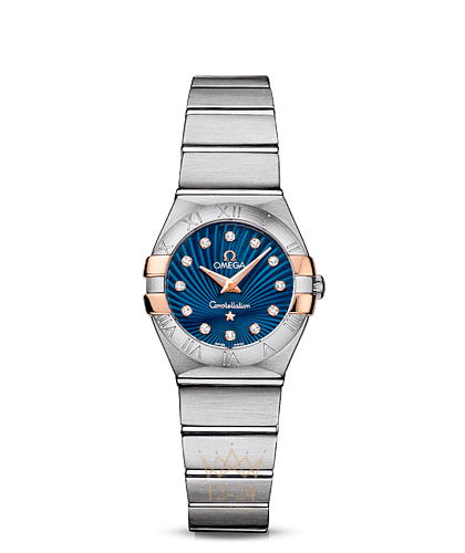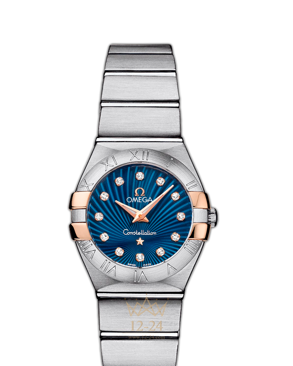 Данная модель имеет синий циферблат с узором Supernova и 12 бриллиантовыми часовыми метками. Безель с выгравированными римскими цифрами и скобками из 18-каратного розового золота закреплен на корпусе диаметром 24 мм из нержавеющей стали, который дополнен стальным . В этих часах используется кварцевый часовой механизм OMEGA, калибр 1376.