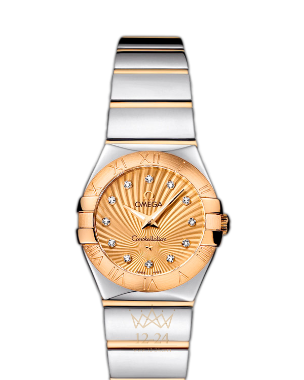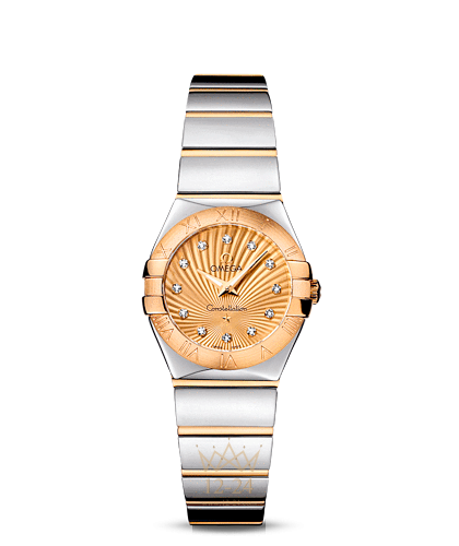 Эта полированная модель имеет циферблат цвета шампанского с узором Supernova и бриллиантовыми часовыми метками, который накрыт устойчивым к царапинам сапфировым стеклом. Безель из 18-каратного желтого золота с выгравированными римскими цифрами закреплен на корпусе диаметром 24 мм из нержавеющей стали, который дополнен браслетом из нержавеющей стали и 18-каратного желтого золота. В этих часах используется высокоточный кварцевый механизм OMEGA, калибр 1376.
